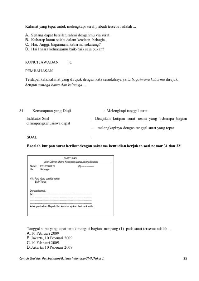 Contoh Soal Un Bahasa Indonesia Smp Pk1 Dan Pembahasannya via www.slideshare.net